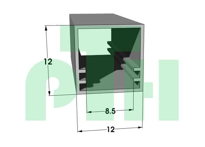 Perfil disponible en los acabados: PC Transparente, PC Opalino, PMMA Trasparente, PMMA Opalino, PMMA Satinado Natural, PMMA Satinado Blanco, PMMA Satinado "C", PMMA BW blanco y negro Satinado<br>, PC BW blanco y negro, PC Coloreado*, PMMA Coloreado*