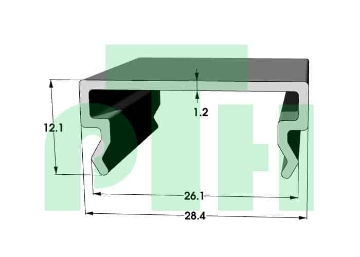 Profil disponible dans les finitions: PC Transparent, PC Opale, PC SBB Satiné, PMMA Transparent, PMMA Opale, PMMA Satiné Naturel, PMMA Satiné Blanc, PMMA Satiné "C", PMMA BW noirblanc Satiné, PC BW noirblanc, PC Coloré*, PMMA Coloré*