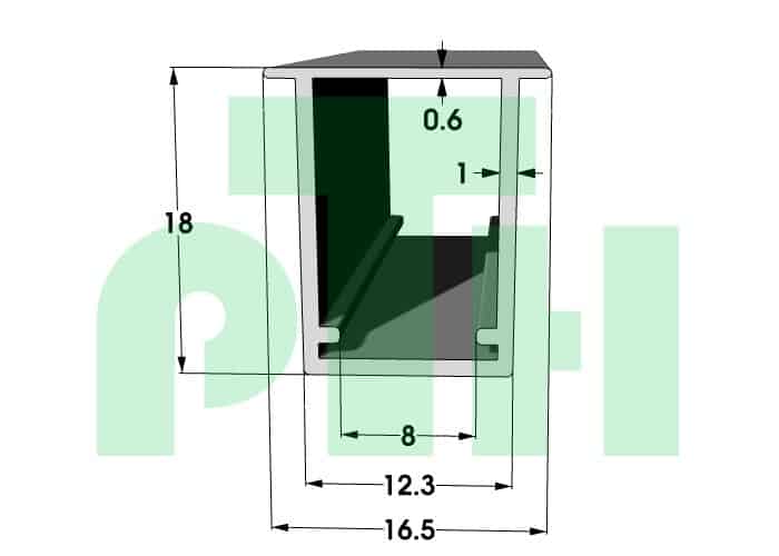 Profil disponible dans les finitions: PC Transparent, PC Opale, PC SBB Satiné, PMMA Transparent, PMMA Opale, PMMA Satiné Naturel, PMMA Satiné Blanc, PMMA Satiné "C", PMMA BW noirblanc Satiné, PC BW noirblanc, PC Coloré*, PMMA Coloré*