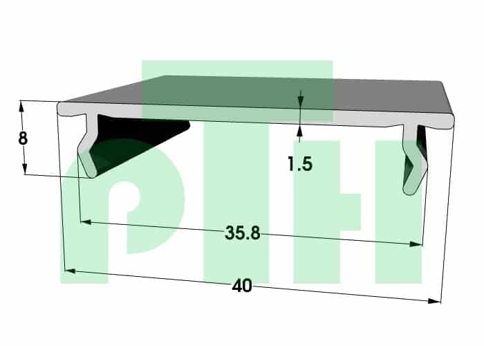 Profil disponible dans les finitions: PC Transparent, PC Opale, PC SBB Satiné, PMMA Transparent, PMMA Opale, PMMA Satiné Naturel, PMMA Satiné Blanc, PMMA Satiné "C", PMMA BW noirblanc Satiné, PC BW noirblanc, PC Coloré*, PMMA Coloré*